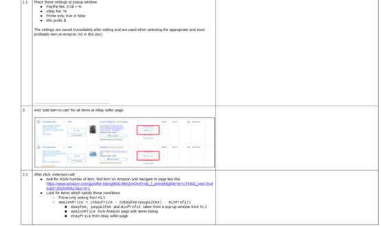 Before development, we always make research on how your task is feasible and how long it will take. You need an extension to automate eBay? Excellent. But first of all it is necessary to find what limitations the platform itself has, what difficulties can arise during development, to find bottlenecks in the current concept. Let me show you the example of our extension.